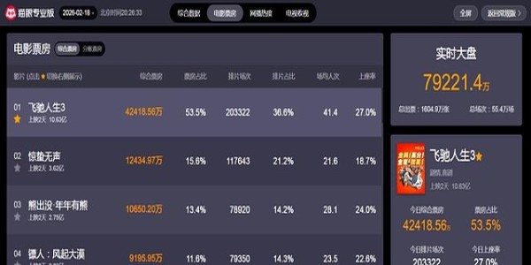 截止2月18日中午20时26分,从猫眼专业版的实时数据看,当前热映影片的票房前五已经非常明确。
