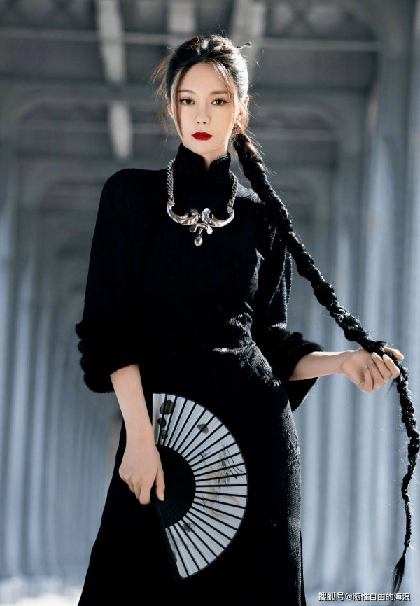 沈梦辰一身黑色旗袍,细腻华丽,展现出东方女性的柔美和典雅。而让人最为惊艳的,则是她头上那根超长的麻花辫,长达1米5,极具视觉冲击力。这种古典与现代的碰撞,加上她自信的微笑,让她完美地展现了东方女性的妩媚与神秘。