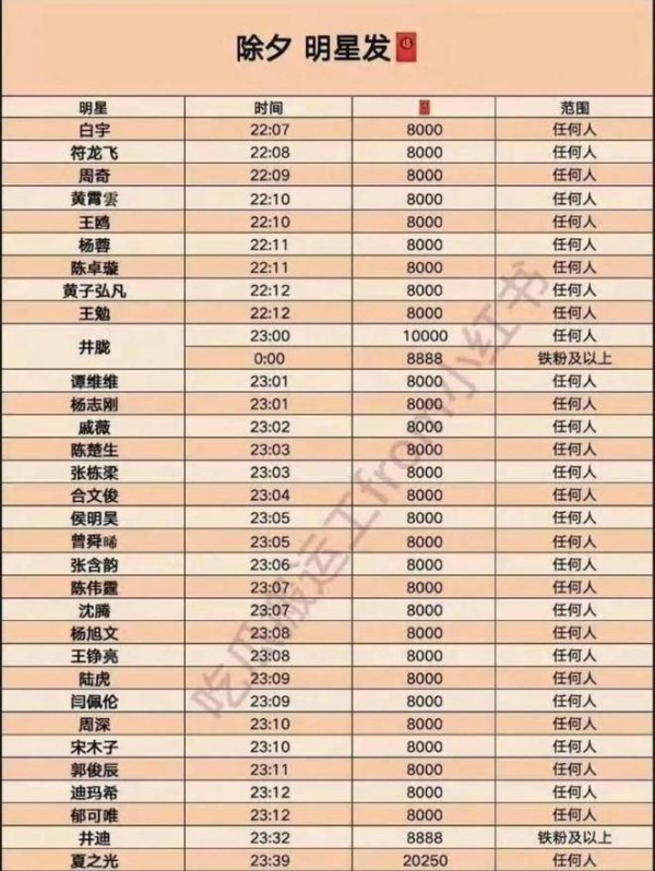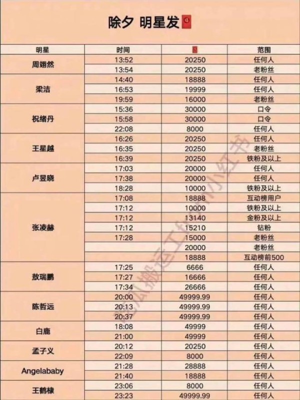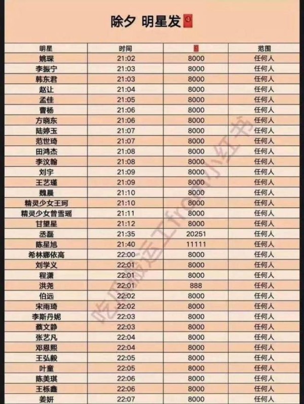 热搜又炸了!配合着除夕夜的气氛,微博今年举办了一个艺人接力发红包的活动。从早到晚,艺人们轮番上阵,带着满满的年味和红包,点燃了网友们的期待。每个时段的红包发放,成了网友们的重点关注,大家纷纷在微博上抢红包,场面热闹非凡。