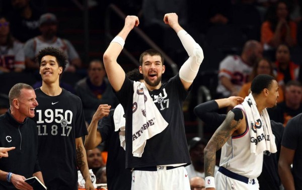 首先,祖巴茨与科林斯的磨合终于开花结果。本赛季初两人因打法差异存在不小矛盾,曾被认为难以共存。但经过时间的调整与适应,这次对阵太阳的比赛证明了他们已经实现了配合上的质变。祖巴茨贡献14分20篮板,科林斯拿下16分9篮板,两者在攻防两端形成了极佳的互补,真正实现了协同作战。