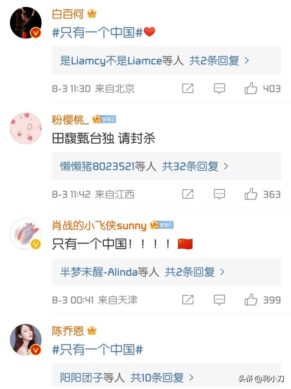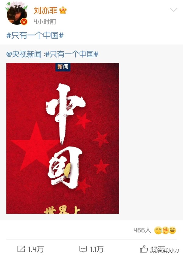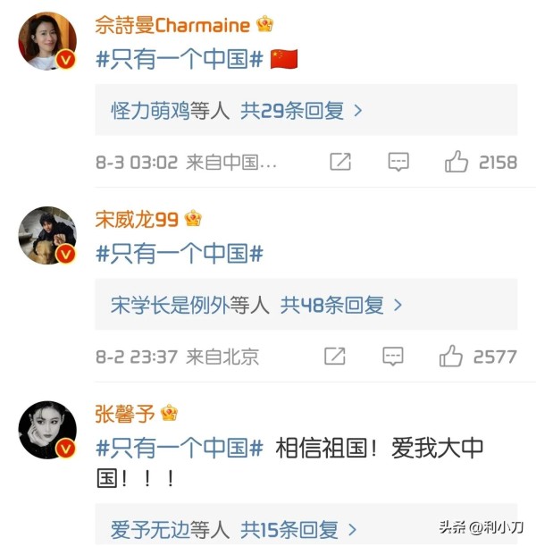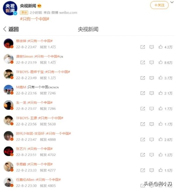 央视新闻在微博发布的话题“只有一个中国”火了,也是两岸三地众明星艺人发声表明态度立场的时候了!