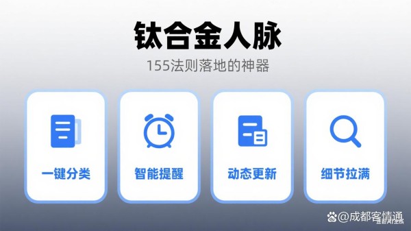 钛合金人脉APP不仅是一个工具,更是一套人脉经营的思维系统。它帮助你: