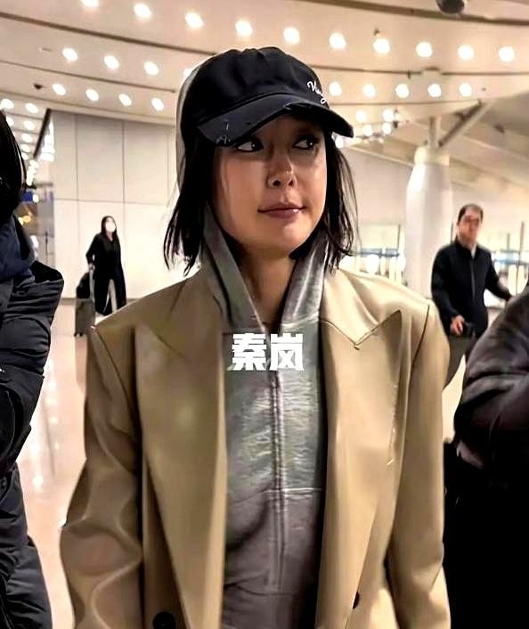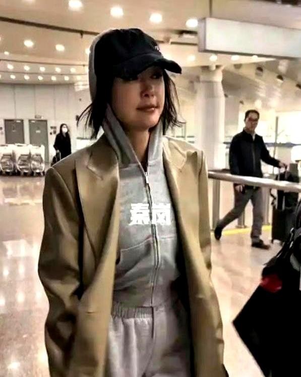 机场被拍那一刻,她的脸颊明显有些浮肿,气色看起来也差,连嘴角都带着无奈。