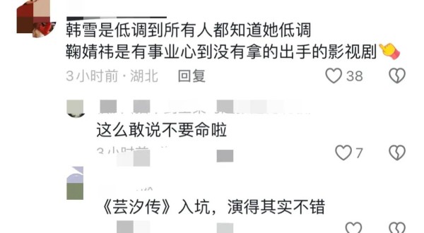 另一个被频繁提到的例子是演员鞠婧祎。有网友评价她"有事业心到没有拿得出手的影视剧"这种直白的批评虽然尖锐,但也反映出观众对演员作品质量的关注。