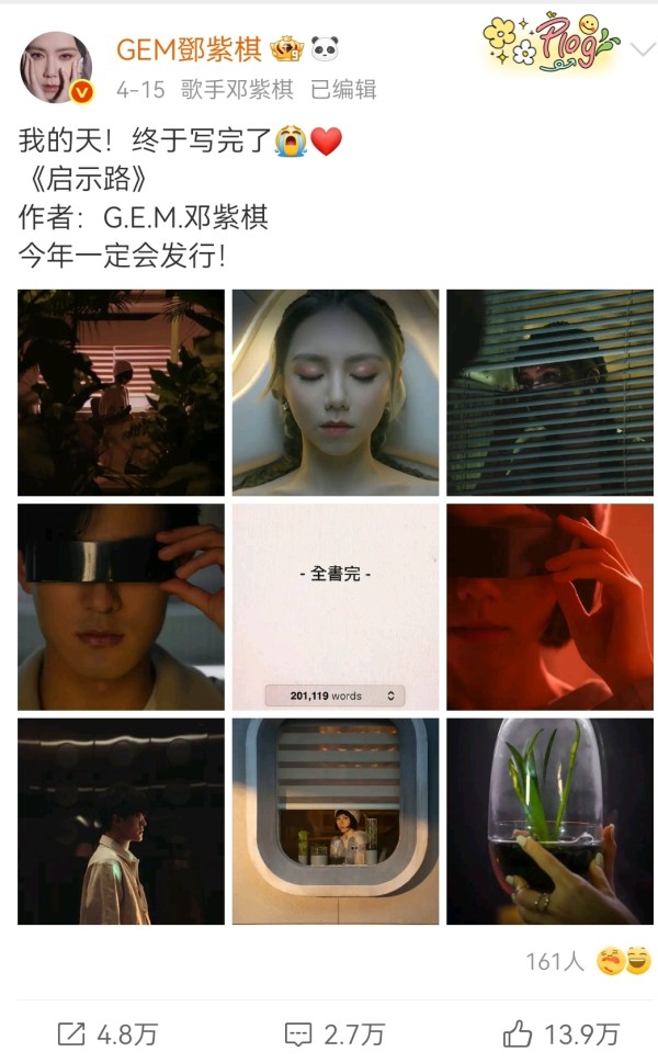 邓紫棋跨界写科幻小说,20万字《启示...@雪花的动态