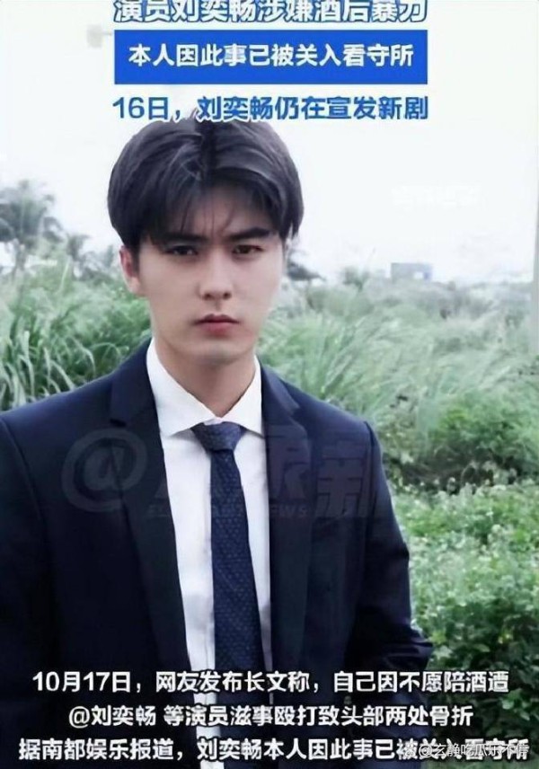 事情起因于,某博主在社交媒体发文爆料,自己因婉拒了刘奕畅为首的一众演艺人士的陪酒要求,竟惨遭围殴。即便博主已被打到昏迷,对方依旧没有停止暴力,甚至变本加厉。令人生气的是,刘奕畅竟抄起空酒瓶重击博主头部,随后拿着破裂的瓶身试图继续伤害博主,意图造成无法挽回的严重后果。