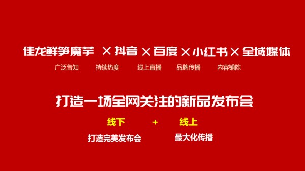 佳龙鲜笋魔芋新品发布方案旨在通过线上线下结合的方式,打造一场全网关注的新品发布会,实现品牌传播与产品销售的双重目标。