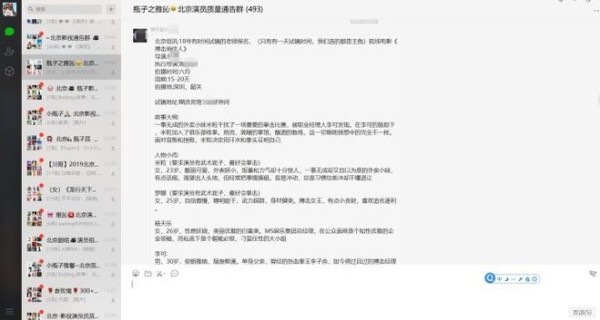 (圈内演员通告群发布用人通告是目前北京拍戏用人或者演员接戏最普遍的方式)