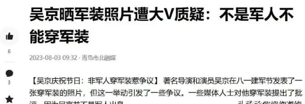 很多人用“假爱国”来讥讽他,原因无非是他在公开场合的发言太直白,配合表情动作,被二次创作成了表情包广泛传播。再加上他曾在建军节发布照片,一些人就说他蹭热度。但公平地说,吴京拍电影是为了商业收益没错,可那些作品所激发的民族自信和精神共鸣,并不是单纯利润能衡量的。