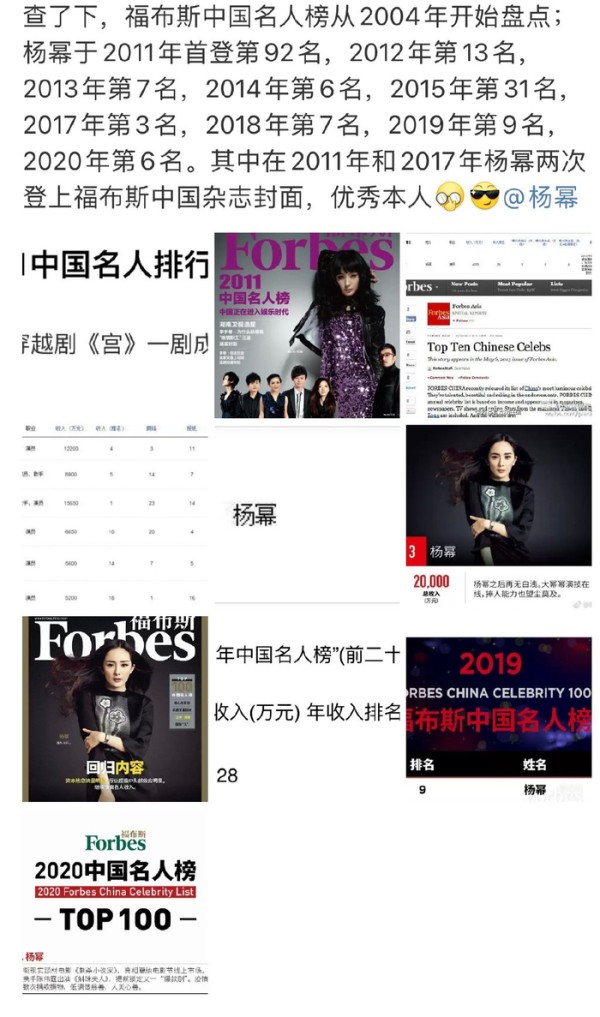 2020福布斯中国名人榜发布易烊千玺登顶福布斯名人榜杨幂第九,易烊千玺第八,周冬雨第七,第一实至名归
