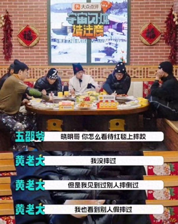 黄晓明综艺曝光娱乐圈红毯明星“假摔真相”,王鹤棣黄子韬很意外