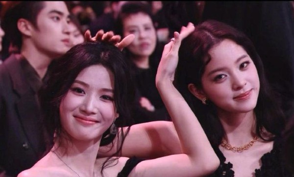 当晚微博之夜内场,欧阳娜娜与卢昱晓相邻而坐,全程热聊不断,嘴角始终上扬。镜头捕捉到暖心一幕:欧阳娜娜自然抬手,轻轻抚摸卢昱晓的头顶,卢昱晓笑意盈盈,两人还同步比出可爱手势,少女感爆棚。没有刻意摆拍,没有脚本设计,简简单单的摸头互动,尽显青春女生的友好与亲昵,视频一经流出便快速传播,网友直呼“这才是真姐妹同框”“甜妹贴贴太治愈了”。