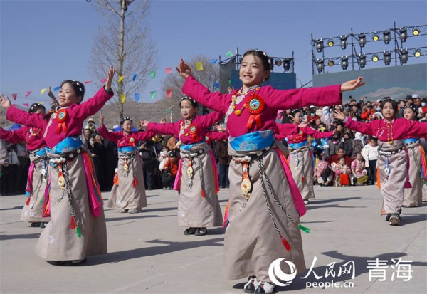 人民网西宁2月27日电 (马可欣)2月26日,第一届拉科德哇宗喀传统民族服饰文艺展演活动在青海省西宁市湟中区拦隆口镇举行。1264名村民身着宗喀传统民族服饰,共同完成具有地域特色的集体舞蹈表演。