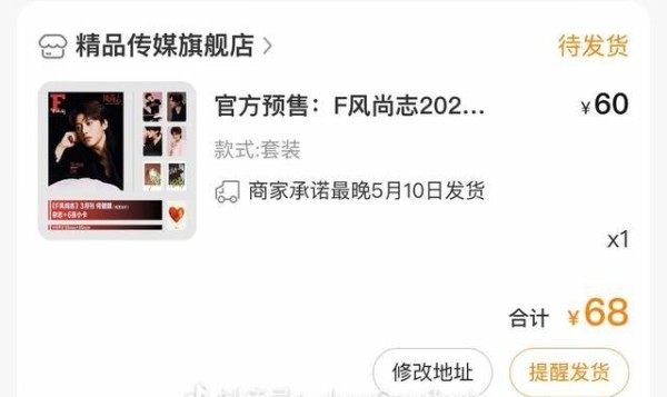 3月21日才官宣的杂志封面,粉丝已经开始“硬核消费”。什么叫硬核?有人一口气下单27本,因为“27”谐音“爱七”;跟手又来一单50本,美其名曰“庆祝杀青”。这不是买杂志,这是给爱豆的简历上焊金砖。预售信息显示5月10日发货,也就是说,这笔钱先垫出去,数据先刷起来,至于那堆印着同一张脸的纸怎么处理?不重要。重要的是销量数字,是给金主爸爸看的一张“商业价值认证”。