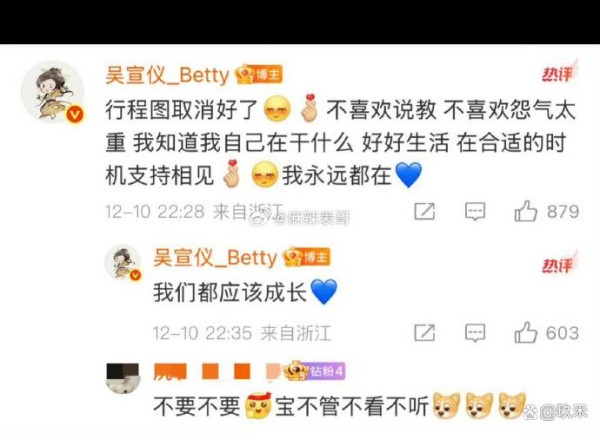 2025年12月10日,吴宣仪在个人微博话题#就宣仪式感#下投下一枚重磅炸弹。当她在评论区敲下"行程图取消好了,不喜欢说教、不喜欢怨气太重"这行字时,整个内娱粉丝生态的隐秘裂缝突然被撕开。这条虽秒删却已截屏疯传的评论,像一把手术刀,精准剖开了当代偶像产业中艺人自主权与粉丝控制欲的致命矛盾。