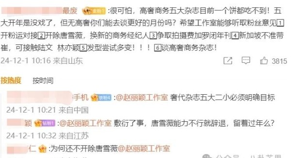 这场脱粉风波的背后,隐藏着粉圈文化的复杂生态。部分粉丝对明星的期待已经超越了支持本身,更像是一种控制。他们不仅对赵丽颖的事业发展方向指点江山,还对团队成员大加批评,甚至要求直接换人。对于明星而言,这种爱之深责之切的关爱,有时反而是一种沉重的负担。
