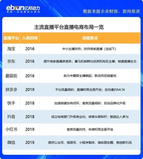 淘宝、快手等主流直播电商平台的GMV(网站成交金额)高速增长,加之新角色入局,直播行业还远未达到天花板。2020年,直播电商市场规模有望达到万亿级别。