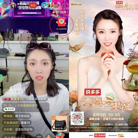 今年3月底,萱姐什么都没准备,就去拼多多旗下的多多进宝里挑了100多种商品,一个人拿手机直播了两小时。那一次,她的直播吸引了两万名观众。这个成绩,与她投入大量时间和人力成本的淘宝直播间不相上下。第二天,萱姐就和公司内部开会,拍板决定做拼多多的达人直播。(主播昵称:苹果姐姐)
