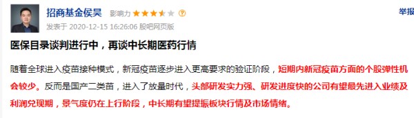 比如,12月15日,开门见山提示部分医药股“景气度仍在上行阶段,中长期有望提振板块行情”。