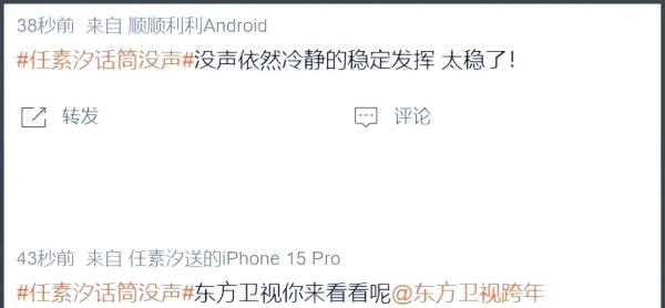 直播晚会中偶尔会出现一些小插曲,例如东方卫视的任素汐在演唱时,麦克风突然无声,这让网友们误以为自己的电视出了问题。