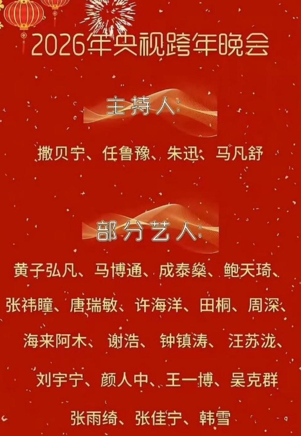 2026跨年晚会!各大卫视嘉宾、节目单正式公布!浙江卫视表现不佳