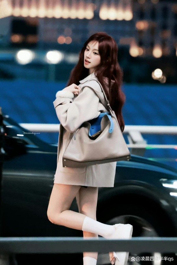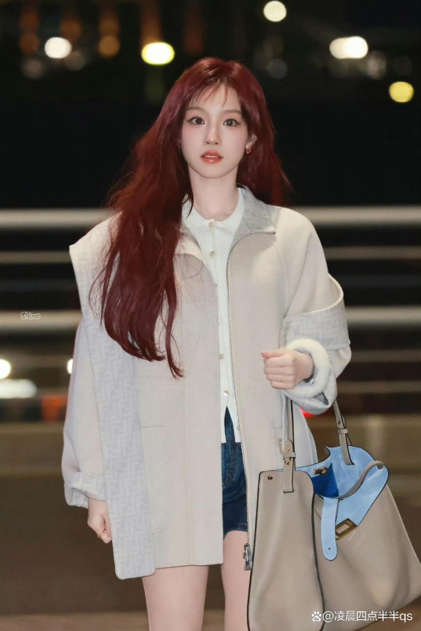 第二层:状态——机场出发,星光不减。 从机场出发图来看,虽然行程忙碌,但她的状态依然能打。没有疲惫感,没有倦容,就是那种“随时准备出发”的饱满状态。这种职业素养,让人佩服。