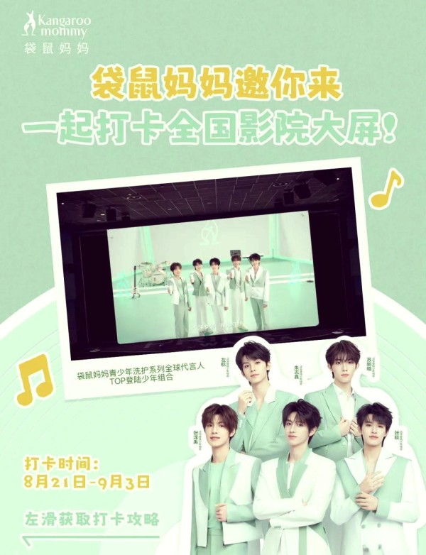 2025年8月16日,知名少年组合TOP受邀成为袋鼠妈妈青少年洗护系列的全球代言人,此次合作以“青春守护力MAX”为核心理念,预示着袋鼠妈妈品牌将进一步聚焦青少年市场,提供更加贴合年轻人需求的洗护产品。