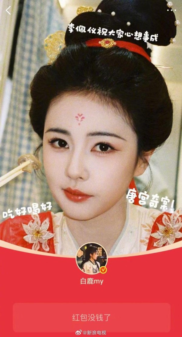 类似的节日营销策略在内娱已形成标准化模板。白鹿在2026年春节期间的操作同样值得玩味。她为新剧《唐宫奇案》发放了近五万元的红包,金额设定接近整数门槛却刻意规避,形成独特记忆点。红包封面融合剧中唐风元素,实现剧宣与节日福利的双重绑定,最终带动剧集话题阅读量激增。