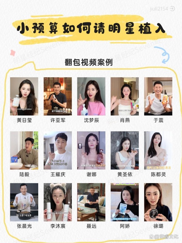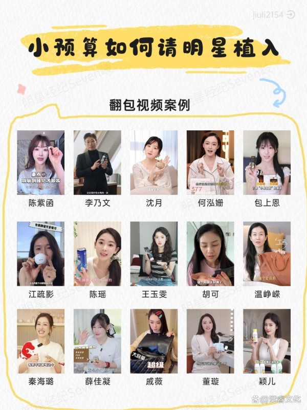 不管你是几万块的试水预算,还是想做多艺人矩阵,我们从艺人筛选、需求对接、内容策划到拍摄执行、物料交付、版权规范,关于时长,权益,都可以协商,有需要的品牌可以滴滴我们要素材案例~
