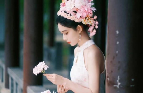 近日的中秋,孟子义也尝试一回簪花造化,她选的是粉色的花朵,搭配一身白色锦缎旗袍,手中一把恰到好处的白色油纸伞,烟雨朦胧中,那婉约的江南女子从此便留在了心中,久久不能忘怀。
