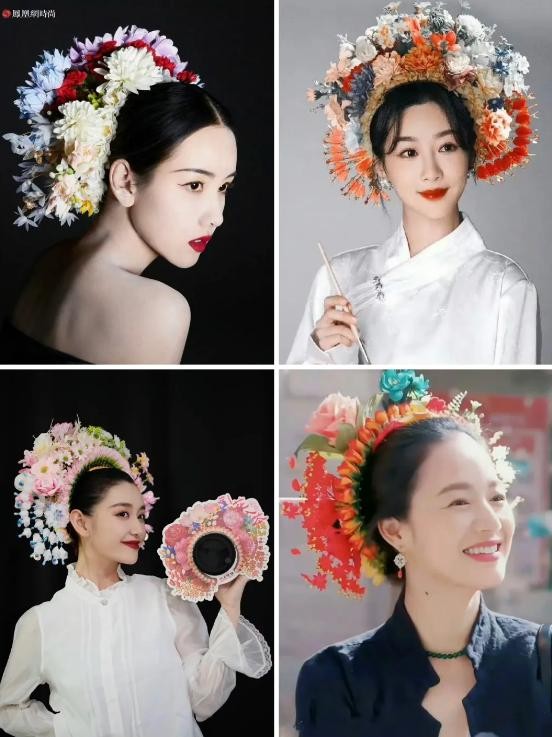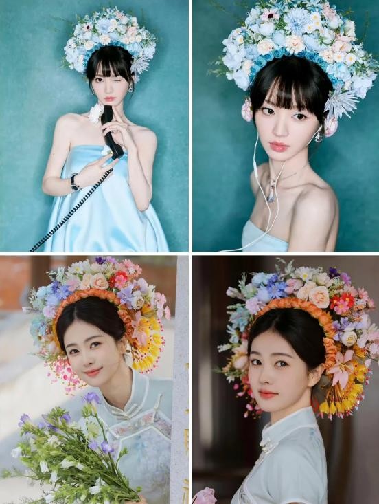 说到鲜花锦簇,还想起之前圈内刮起的一股簪花风,就是她带动起来的。
