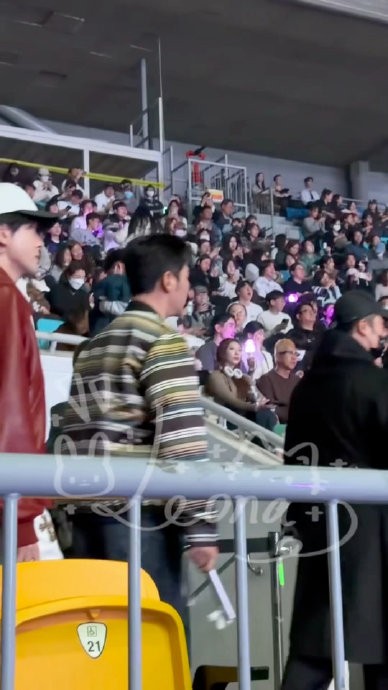 跑男团到韩国看宋雨琦idle演唱会,白鹿在李晨陈赫身后比心