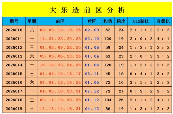 综合分析,大乐透本期012路比推荐为:2:2:1