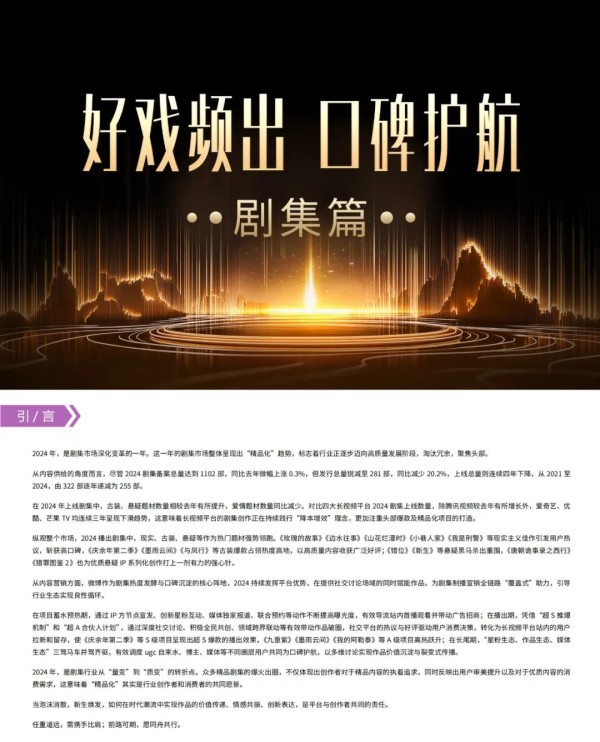 剧集江湖风起云涌,《庆余年第二季》《玫瑰的故事》等掀起全民追剧狂潮,《小巷人家》《边水往事》《我是刑警》凭借扎实剧情和细腻演技走出口碑破圈之路。内容精品化、聚焦头部成为行业主攻方向,各制作方纷纷加大在内容品质上的投入,力求打造出更多有影响力的头部剧集。