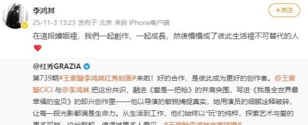 没有花里胡哨的文案,就一句:“在这段婚姻里,我们一起创作、一起成长……”你品,你仔细品。