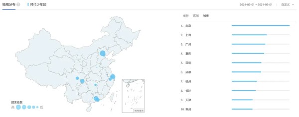 “时代少年团” / 2021-06-01 / 搜索来源城市前十名