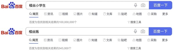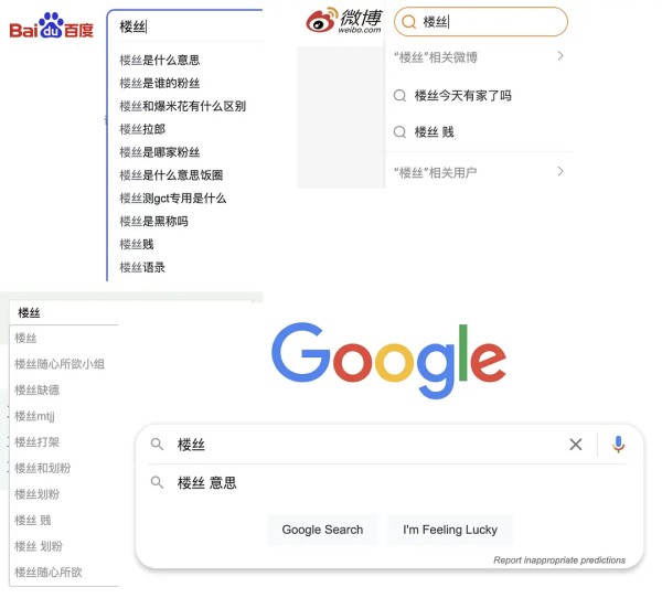 几大网站上“楼丝”的关联;只有Google不认识楼丝