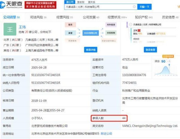 随后凡客上市失败、库存积压严重、供应链断裂,公司的影响力大不如前。从市中心豪华办公楼搬到南五环的亦庄,并且员工人数大幅减少。据天眼查数据公布,公司主体凡客诚品(北京)科技有限公司目前参保人数仅44人。
