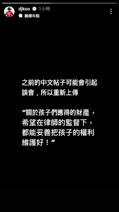 *更新:姐夫华语贴文已删掉关於孩子的字句,修正为「关於孩子们应得的财产,希望在律师的监督下,都能妥善把孩子的权利维护好」。