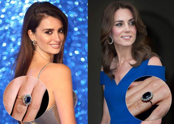 西班牙女演员潘妮洛克普兹(Penélope Cruz )与凯特王妃(Catherine, Duchess of Cambridge)都挑选了以蓝宝石做为主钻,再以白钻石镶边的婚戒。唯一的不同是潘妮洛克普兹的婚戒边比起凯特王妃的款式更为圆润。