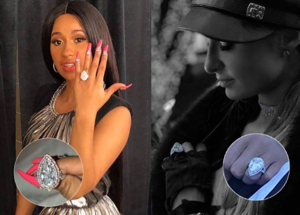 派瑞丝希尔顿(Paris Hilton)曾公开自己的水滴形钻石婚戒价值高达250万美金(约7千500万台币)。这也让人也不禁好奇卡蒂B(Cardi B)身上所佩戴与巴黎希尔顿相似的婚戒到底价值多少呢。
