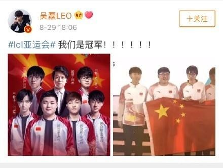 亚运会英雄联盟项目中国队夺冠之后,弟弟吴磊就赶紧发了一条微博表示自己激动的心情,并表示吹爆我狗,跟微博上所有的粉丝一样尽情抒发自己的感情,完全没有身为小鲜肉的矜持,磊磊的假期生活也忒欢乐了吧!