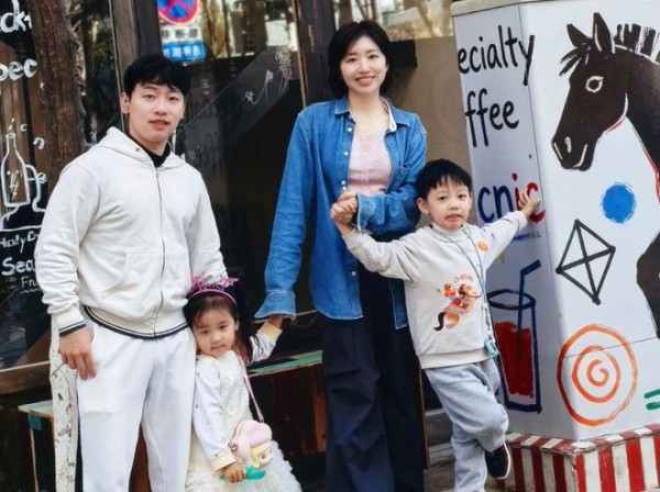 其中一张照片上,邹凯一家四口人亮相。看照片背景,邹凯一家人应该是在某个饮食店的外面。邹凯出现在左边。他穿着一套白色的卫衣,左手扶着自己的女儿。4岁的女儿身高已经达到了邹凯的腰部。她头上戴着蝴蝶结,身上穿着连衣裙,身体斜靠在邹凯的腿上。左手牵着邹凯妻子周婕的右手。周婕一头碎发,上身穿着一件蓝色的牛仔外套,下身是一条黑色的长裤。