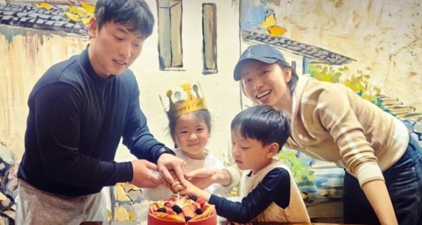 另外一张照片上,一家四口人在切生日蛋糕!小寿星女儿头上戴着皇冠,邹凯和儿子站在女儿两边。三个人共同握着刀切生日蛋糕。周婕弯腰靠着儿子,面对镜头露出灿烂的笑容。看照片背景,像是在自家院子里。不远处有围墙以及各种植物。社交媒体上,网友留言纷纷送出祝福。