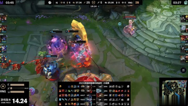 第三局IG面对RNG。开局RNG就狂送3个人头,对线期实力差距巨大,RNG惨遭碾压,15分钟IG就推掉了RNG的高地塔,16分钟就推掉了RNG的基地。