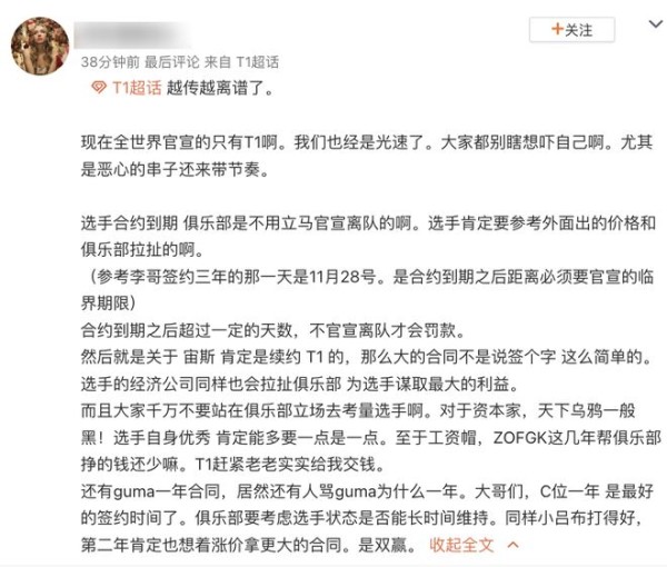 这也急坏了不少T1的粉丝,在T1的官方超话下,不少粉丝也是在不断询问和猜测zeus是否续约。也因为zeus尚未续约的原因,导致目前外界有传zeus没有续约,要去其他队伍(HLE)的传闻,所以粉丝也是热议纷纷。