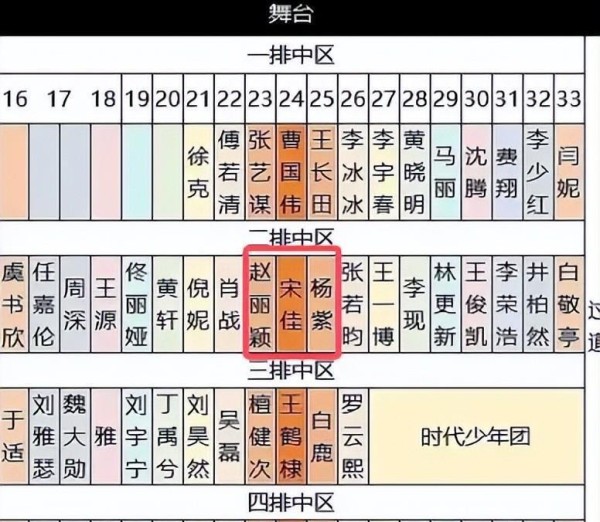 而在内场座位图上,她的位置到了第二排,透漏出她在当今娱乐圈的不再重要。