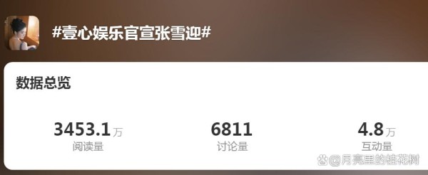 “壹心娱乐官宣张雪迎”话题数据总览阅读量达3453.1万,讨论量6811,互动量4.8万。这一波操作,美得像开了闸的洪水,来势汹汹,跟过年了一样!网友喊话:这状态简直太好,每一帧都像电影画面,抓紧时间打包进组吧!