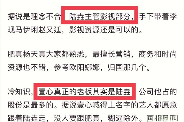 壹心娱乐被曝要分家?知名艺人都愿跟着陆垚,杨天真损失惨重