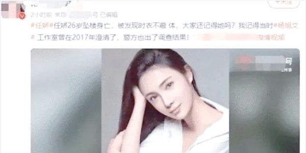 2017年,苏州某公寓楼下发现女星任娇赤身裸体陈尸,令人震惊的是,现场还同处一室的有男星杨旭文。此案一度成为社会焦点,但最终却以任娇醉酒后意外跳楼为由结案。尽管案件真相未明,但杨旭文似乎并未受到任何影响,依旧在娱乐圈中活跃,参演多部影视作品,甚至在冯小刚导演的电影《北辙南辕》中担任重要角色。任娇的被捕成为社会热点,引发了对其他类似事件的关注,如任娇坠楼案,并引发了公众对娱乐圈内部关系的广泛讨论。